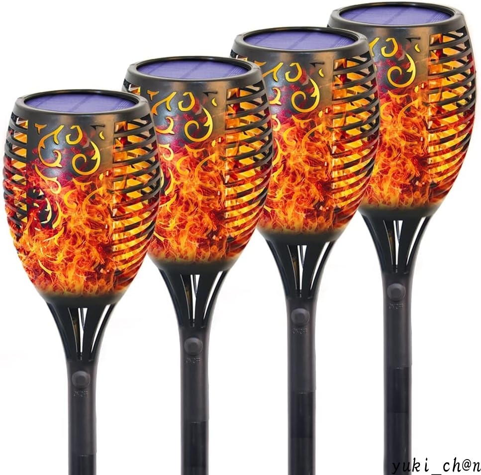 - ソーラーライト 4本セット 屋外 炎ライト ソーラートーチライト 96電球内蔵 IP65防水 自動点灯消灯 ガーデンLEDライト 取付簡単