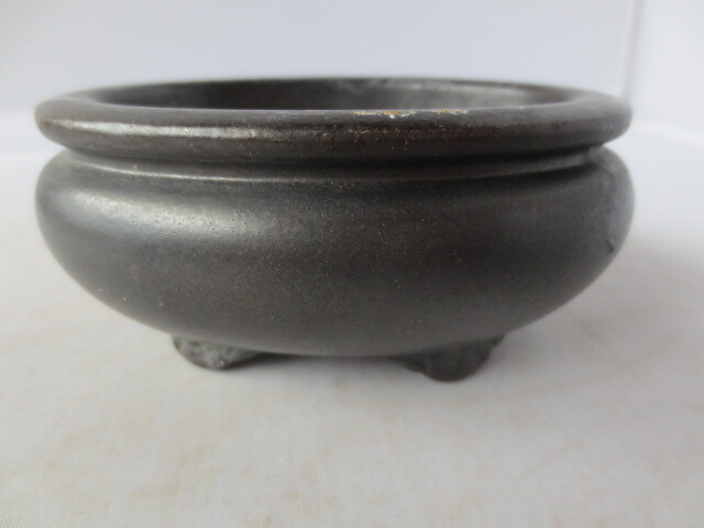 - 【艸】 和鉢 黒釉 袋式 雲足 小花盆 小品盆栽鉢 幅9.9センチ 14sep4