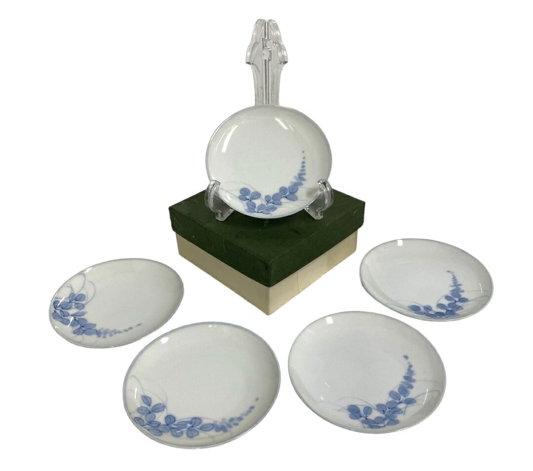 - 【未使用】 波佐見焼 永峰窯 中皿 萩の花 5枚セット 23に308
