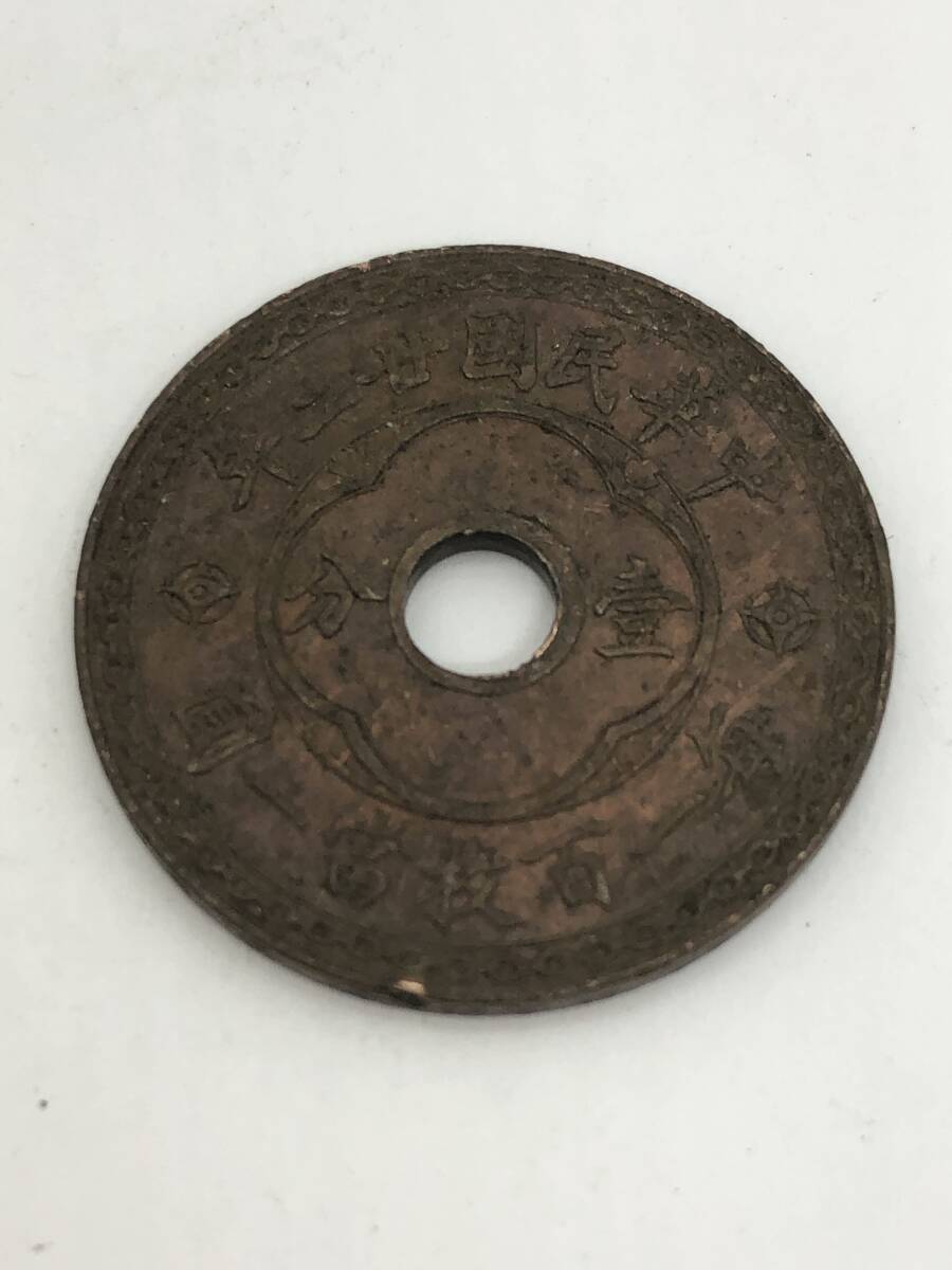 - 中華民国 壹分 銅幣 (1分銅貨/1CENT) 銅貨 毎一百枚當一圓 民国12年 直径:26.56㎜ 重量:6.77g K-9