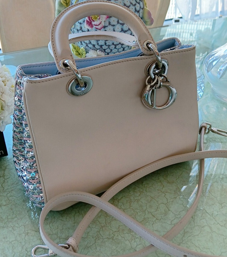 > クリスチャンディオール dior スパンコール レザー カナージュ 激レア ハンドバッグ ショルダーバッグ ベージュ