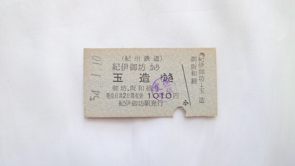 - ▽紀州鉄道▽紀伊御坊から玉造ゆき国鉄連絡乗車券▽A型硬券昭和54年