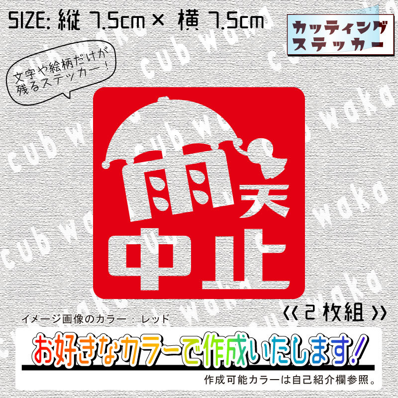 - 雨天中止②ステッカー2枚組 文字絵柄だけ残るカッティングステッカー・カブ・車・バイク・二輪・トラック・リアガラス・リアボックス