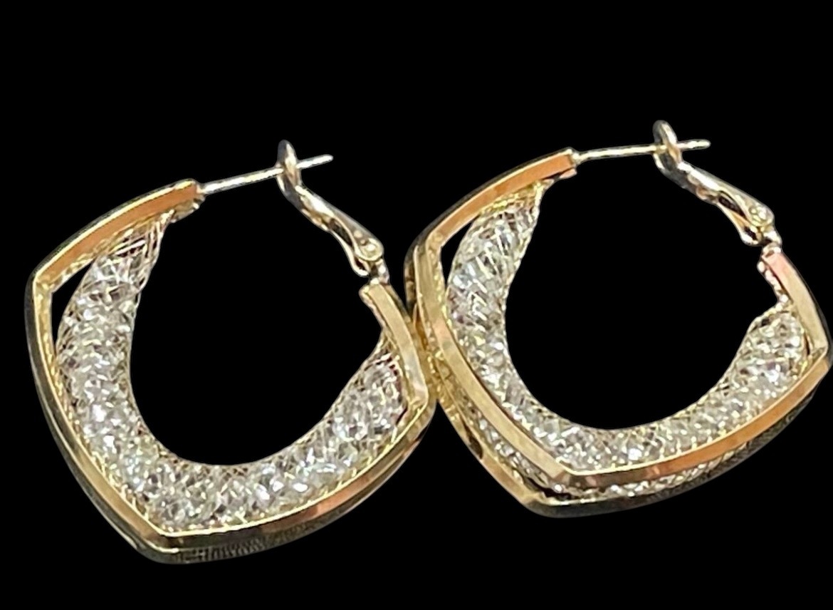 - 大振り czダイヤモンド s925 k18コート イエローゴールド ピアス