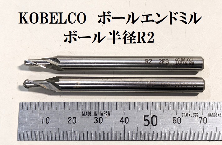 - AA36★KOBELCO ボールエンドミル R2 2枚刃 ロングシャンク ボール半径R2 シャンク径Φ6mm 2本★美品★