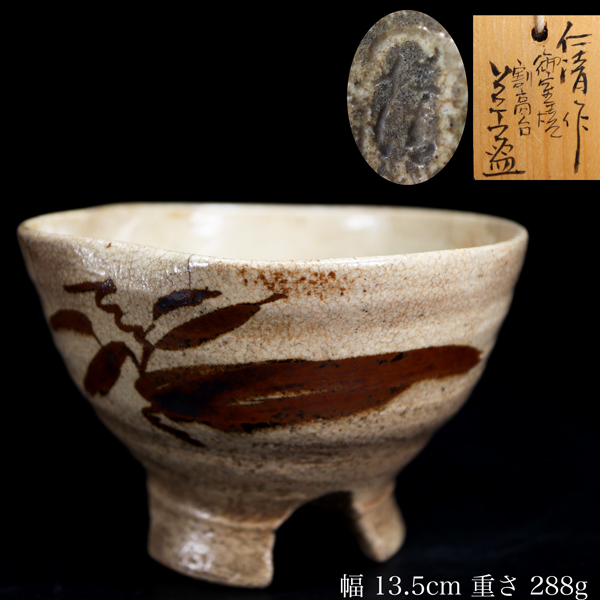 > ◆雅◆ 時代物 名工 野々村仁清 作 茶碗 御室焼 高割台 高さ8.5cm/288g 仁清陶印 煎茶道具 茶道具 高麗茶碗 京焼 共箱 HK24.12 D87.ysnb SP