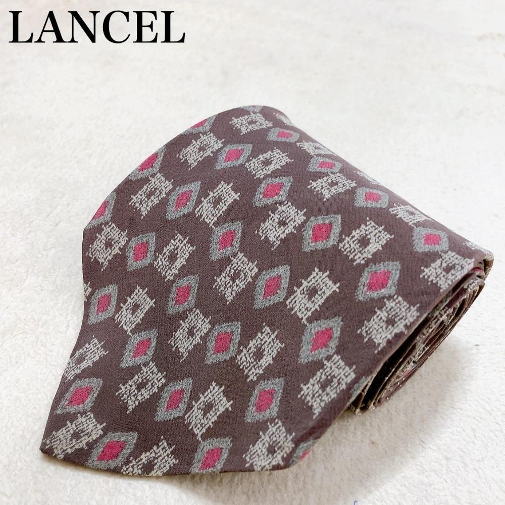 - LANCEL ランセル ネクタイ シルク 総柄 イタリア製 高級感 上品 エレガント ゴージャス ワンポイントロゴ スーツ ビジネス ブラウン V87