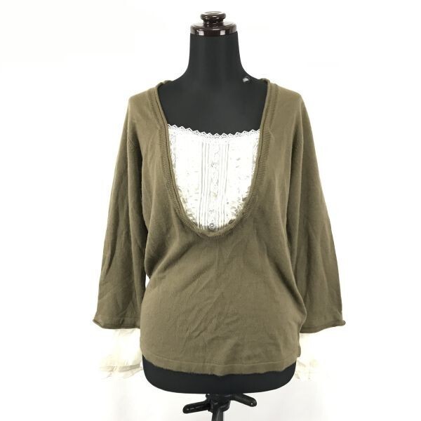 > タグ付き新古品★WEARS INC/ウェアーズインク★着脱レース/春夏セーター【レディースF/茶/ブラウン】◆BG368