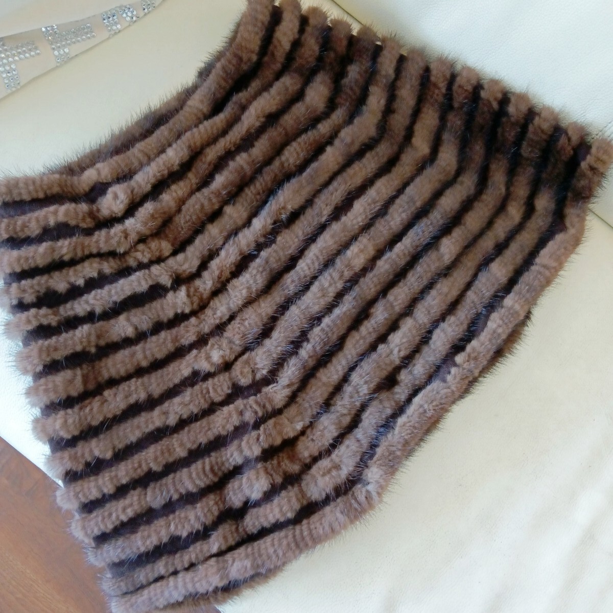 - VOLTA ミンク 大判 毛皮 ニットスヌード ダークブラウン ポンチョ 格安 ショール