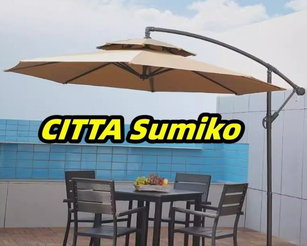 - 実用★ ガーデン パラソル ベージュサンシェードマーケットアンブレラ パラソルUV 50+ 2.7m F1034