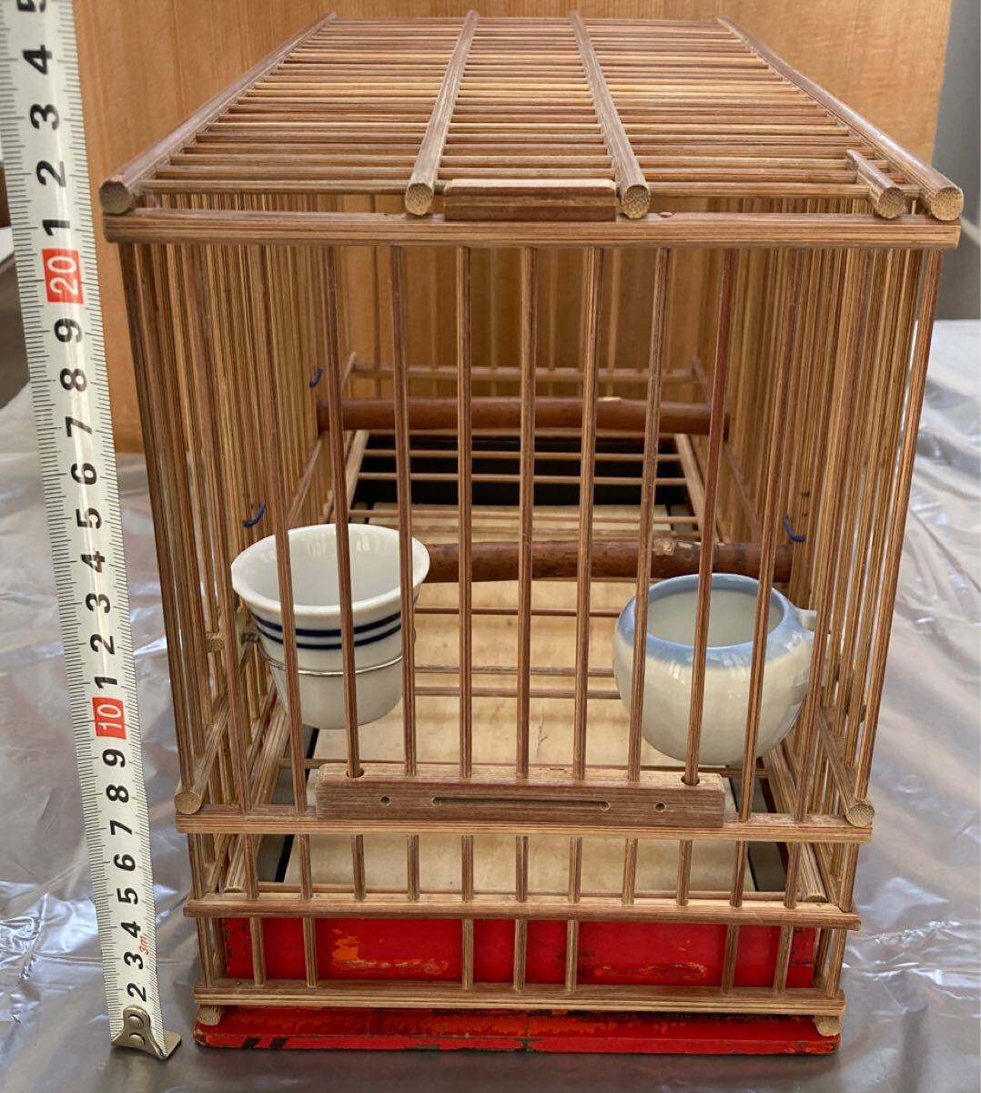 - 鳥かご 竹製 カゴ 鳥籠 アンティーク 竹細工 木箱付き 名工山一 うぐいすかご とまり木黒文字