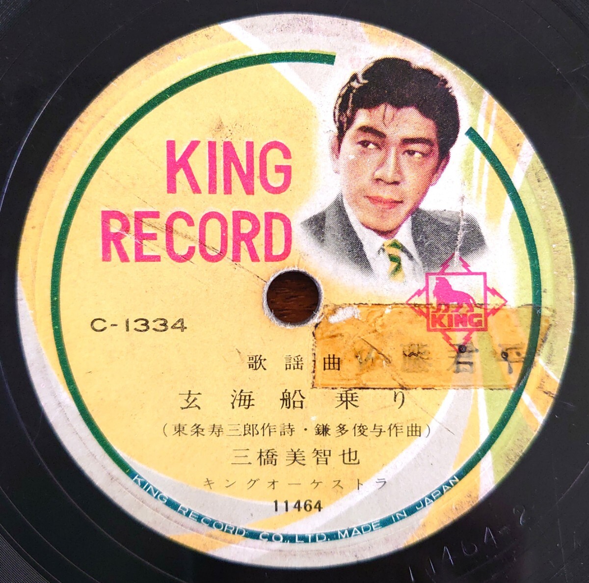 - 【SP盤レコード/欠大】KING RECORD C-1334 歌謠曲/玄海船乗り 三橋美智也/お江戸投げ節 若原一郎
