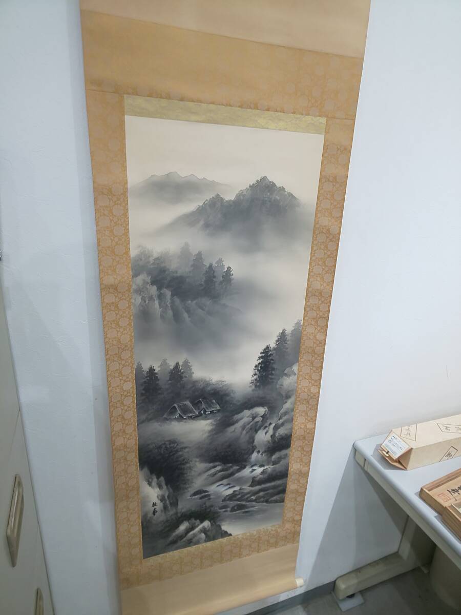 - 63881★模写 桂華 掛軸 山水画 箱が違う