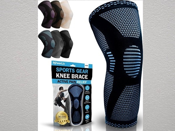 - POWERLIX 膝サポーター スポーツ用 ブルー XXL 1枚入 新品 痛み 腫れ 軽減 3Dニット構造通気性 良好 マラソン バスケ ゴルフ テニス
