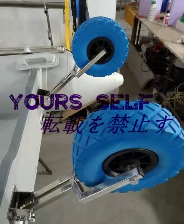 - ボートドーリー 跳ね上げ式 ステンレス製 カヤック ドーリー 跳ね上げ時傾斜式 小型ボート 青タイヤ ノーパンク 耐荷重 150kg曳船