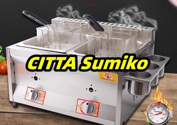 > 業務用フライヤー ステンレス鋼 揚げバスケット付き 温度調整機能 LPガス用 (55*44*34cm二重鍋+二重揚げバスケット)