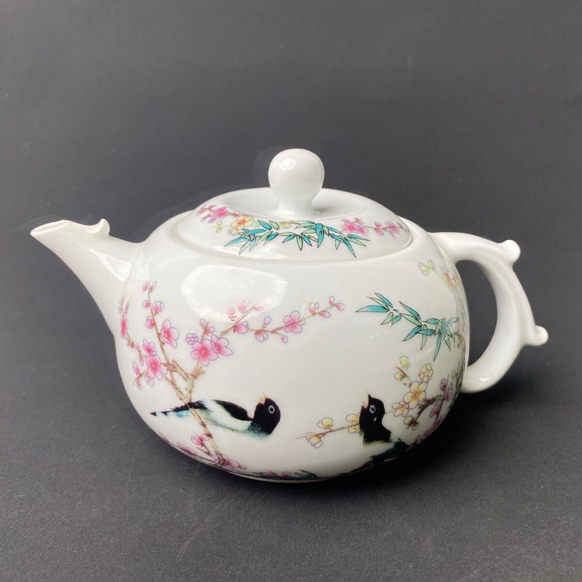 > 中国古美術 陶磁研究所 煎茶道具 時代物 中国茶器 粉彩花鳥紋茶壺 陶磁器 粉彩急須 急須 花柄 茶器