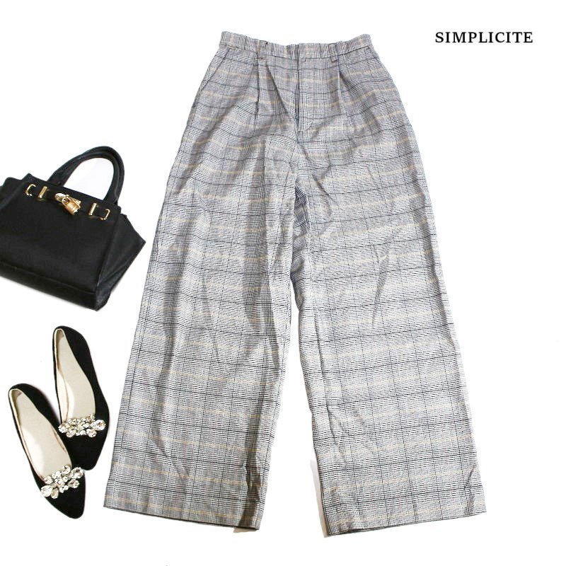 > 美品 SIMPLICITE シンプリシテェ 秋 冬 厚みあり ふんわりミニ起毛 グレンチェック パンツ スラックス F ブラック 黒 ホワイト 白