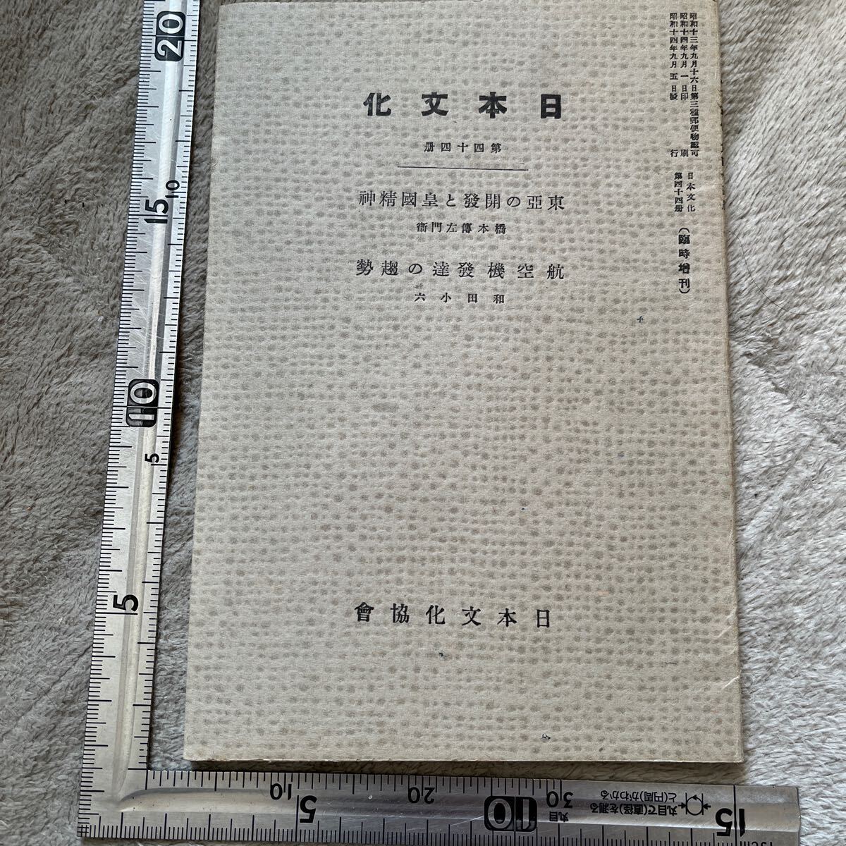 - 戦時下『日本文化』第44册「東亜の開発と皇国精神」「航空機発達の趨勢」/日本文化協会/昭和14年