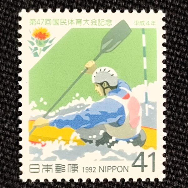 > [25011002]【国民体育大会 第47回】単片 国体「カヌーと紅花」41円 1992年発行 美品