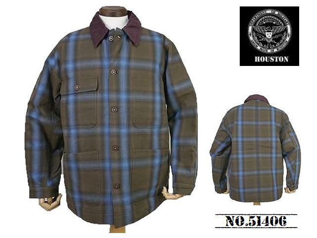 - 【送料無料 30%OFF】HOUSTON ヒューストン オンブレチェック 裏キルティング ビエラ カバーオール NO.51406 BROWN_Lサイズ