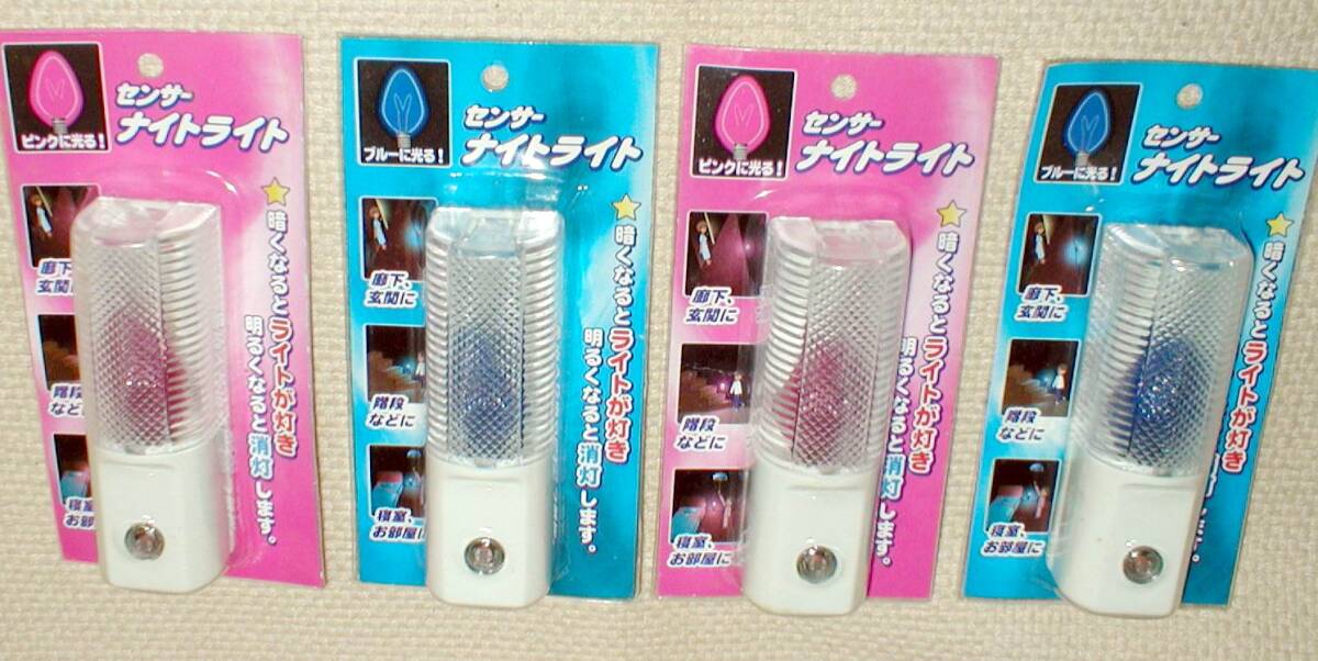 > OHYAMA SH-052/SH-069 SENSOR NIGHT LIGHT ブルー & ピンク 100V/7W 廊下 階段 寝室 コンセント 明-暗 センサー ライト ×4個 送料520円