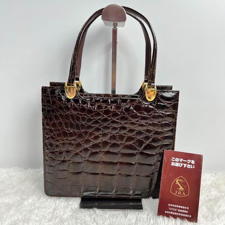 - 【美品】JRA CROCODILE シャイニングクロコダイル ハンドバッグ トートバッグ レザー ワニ 鰐 レディース ブラウン BF340905C