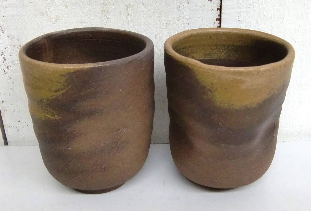 - 伝統工芸 工芸美術 *備前焼 *陶弘造 金重利陶苑 七十七代 金重窯 *湯呑 2点セット 2客 *共箱 栞付き *古物 古道具 古美術 骨董