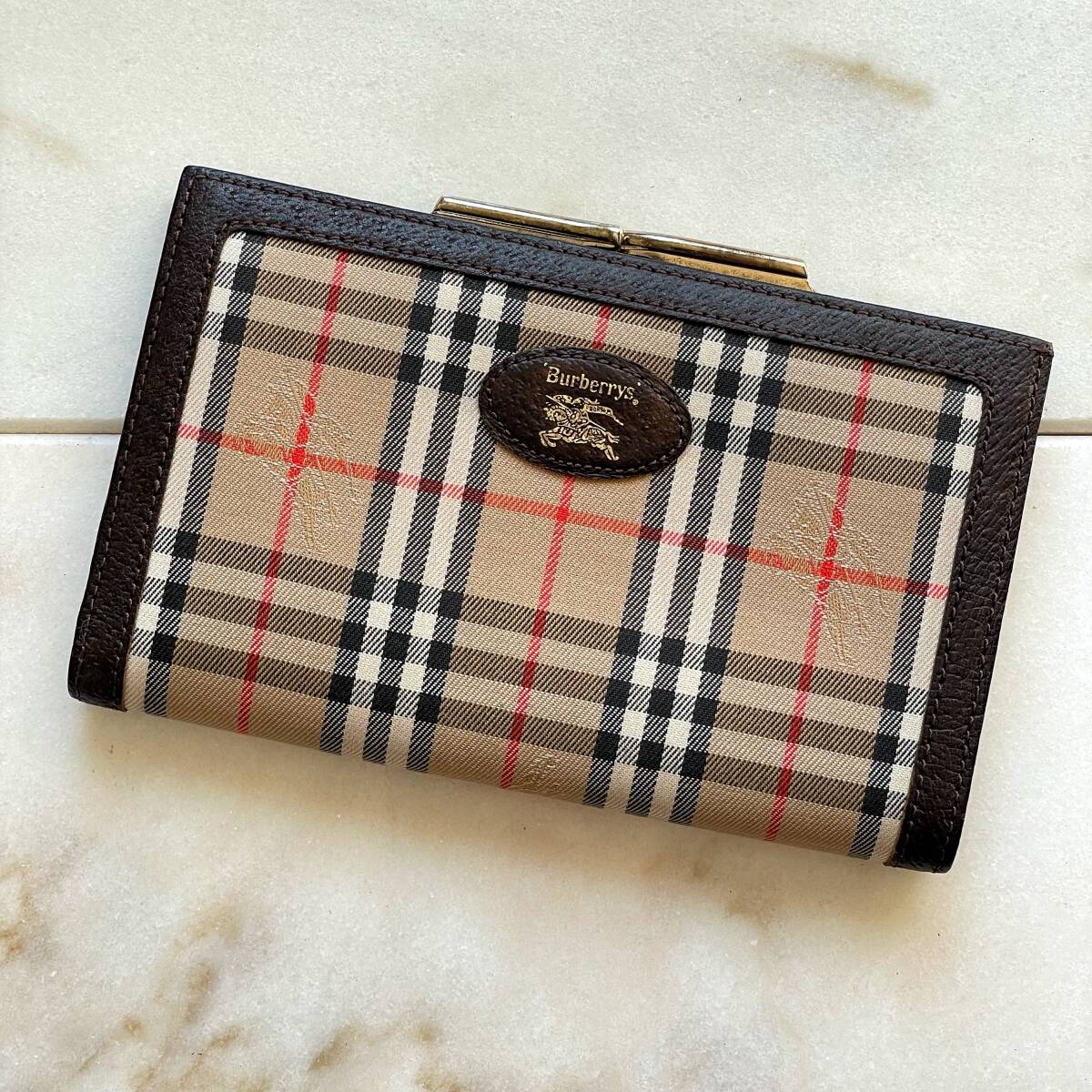 - BURBERRYS バーバリーズ ノバチェック がま口 折り財布 キャンバス 茶