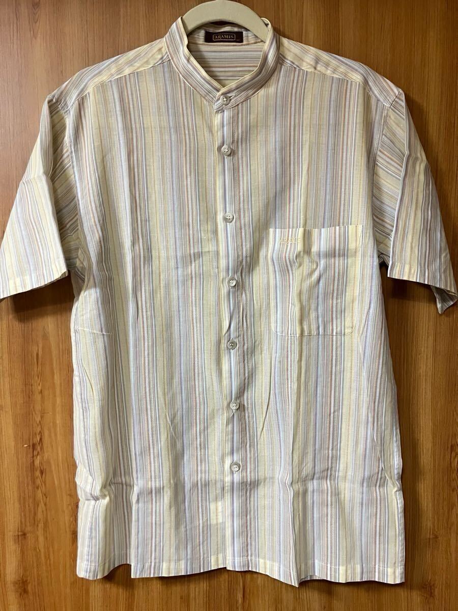 ARAMIS(アラミス)の半袖シャツです。サイズはM、平置き実寸で着丈77・袖丈25・身幅50cm位。素材は綿60%・麻40%で、程良くサラリとしています。