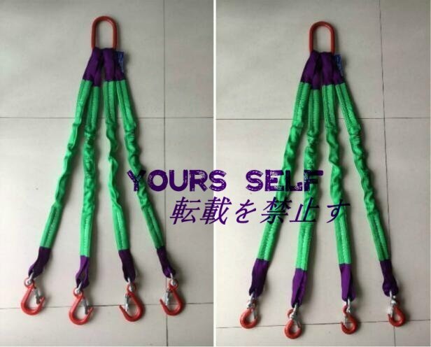 - 工事用材料耐荷重2T★4本吊り ベルトスリング スリングベルト 作業用 荷吊り 合金鋼製フック付き リング付き ポリエステル製 1.5m 上質