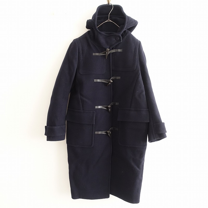 - エンフォルド ENFOLD *ウールメルトンダッフルコート*ネイビー縮絨起毛厚手トグルボタン革紐フードロング(jk2-2412-426)【31A52】