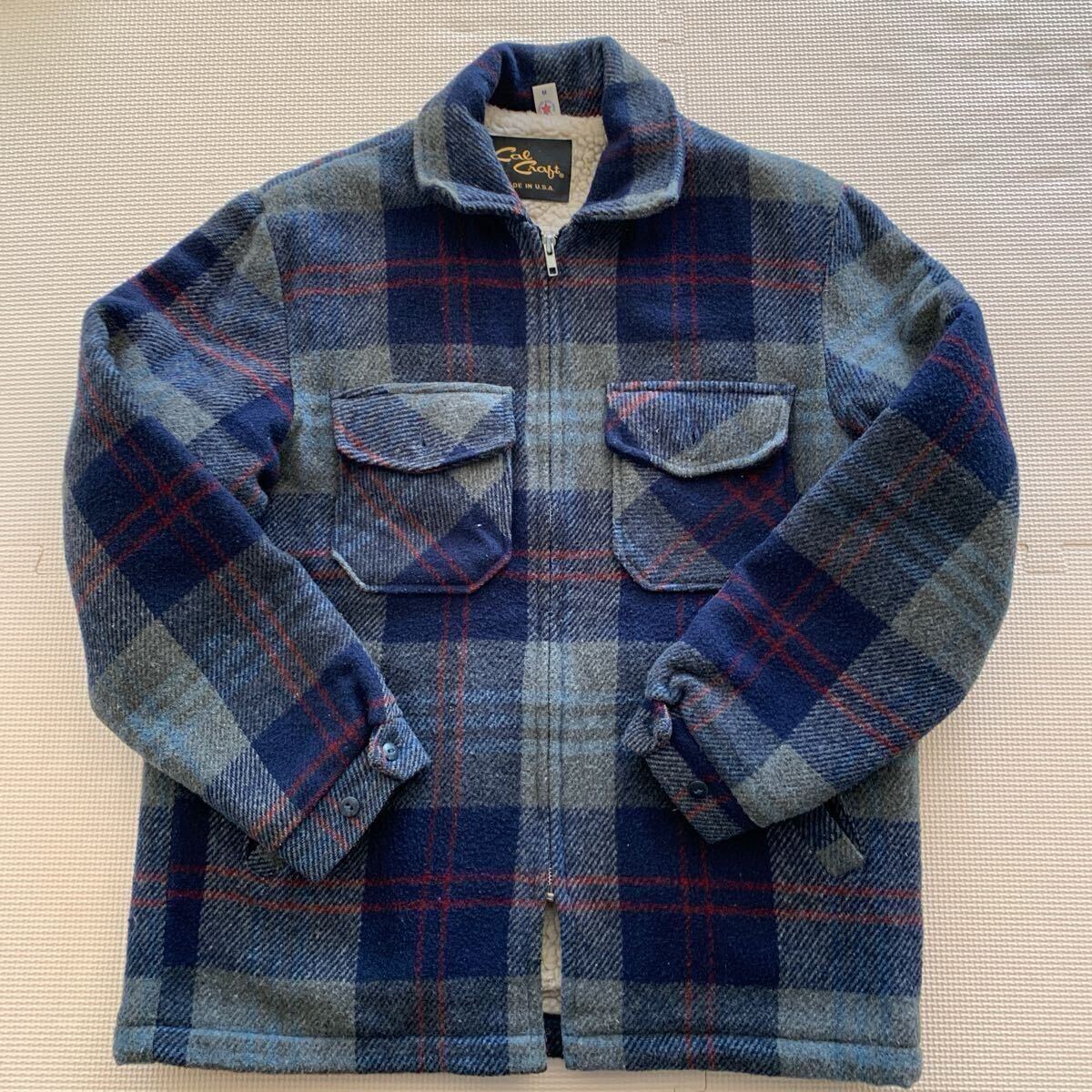 > 80s-90s【Cal Craft】カルクラフト USA製 ウール ボアジャケット 青系 チェック 裏ボア 古着 VINTAGE Mサイズ ブルー ネイビーチェック