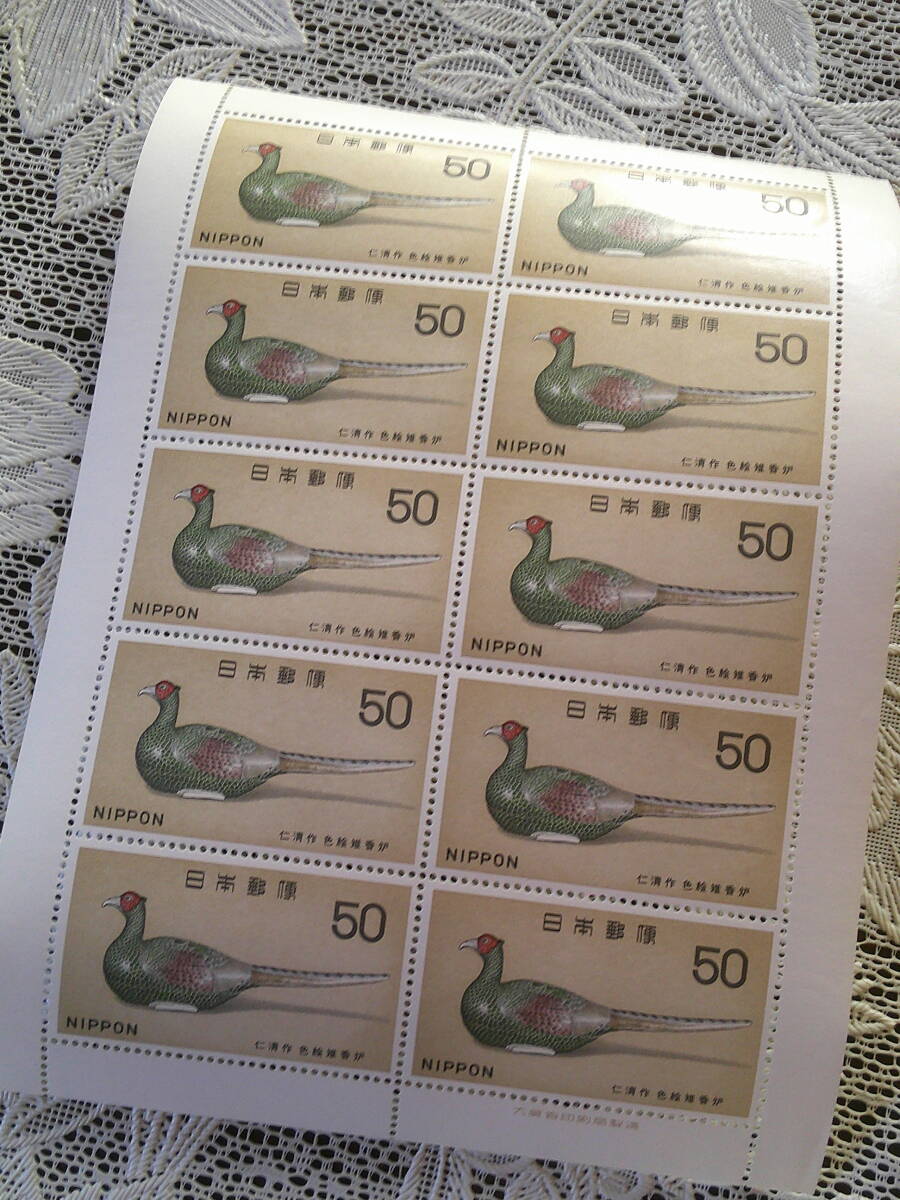 - 額面 500円 未使用 切手 1シート 【仁清作 色絵雉香炉】 50円×10枚 鳥 コレクション 柄 大量 セット コレクター まとめて レトロ 当時物