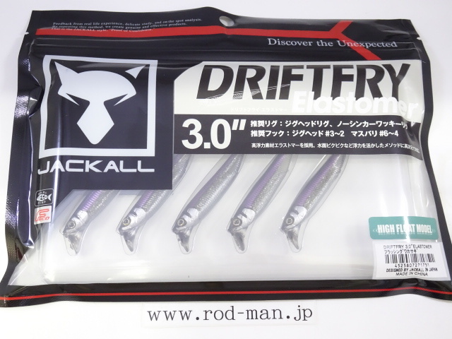 - ジャッカル★ドリフトフライ3.0インチエラストマー★#フラッシングワカサギ★エコ認定商品