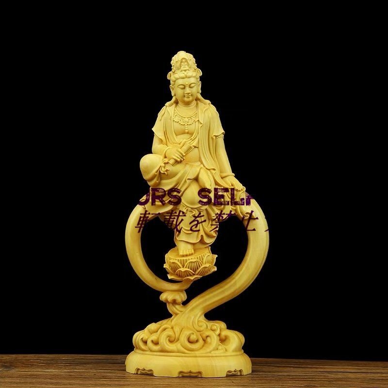 - 自在観音 観音菩薩 観音像 座像 彫刻工芸品 仏教美術 特上彫 総檜木材 仏像座像