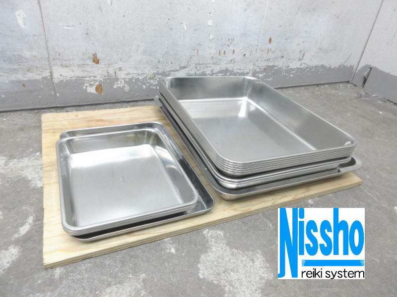 > ■中古 ステンレス角バット12枚セット(8枚取×7枚・21枚取×3枚・他2枚)・厨房専門店!! (5a0338)