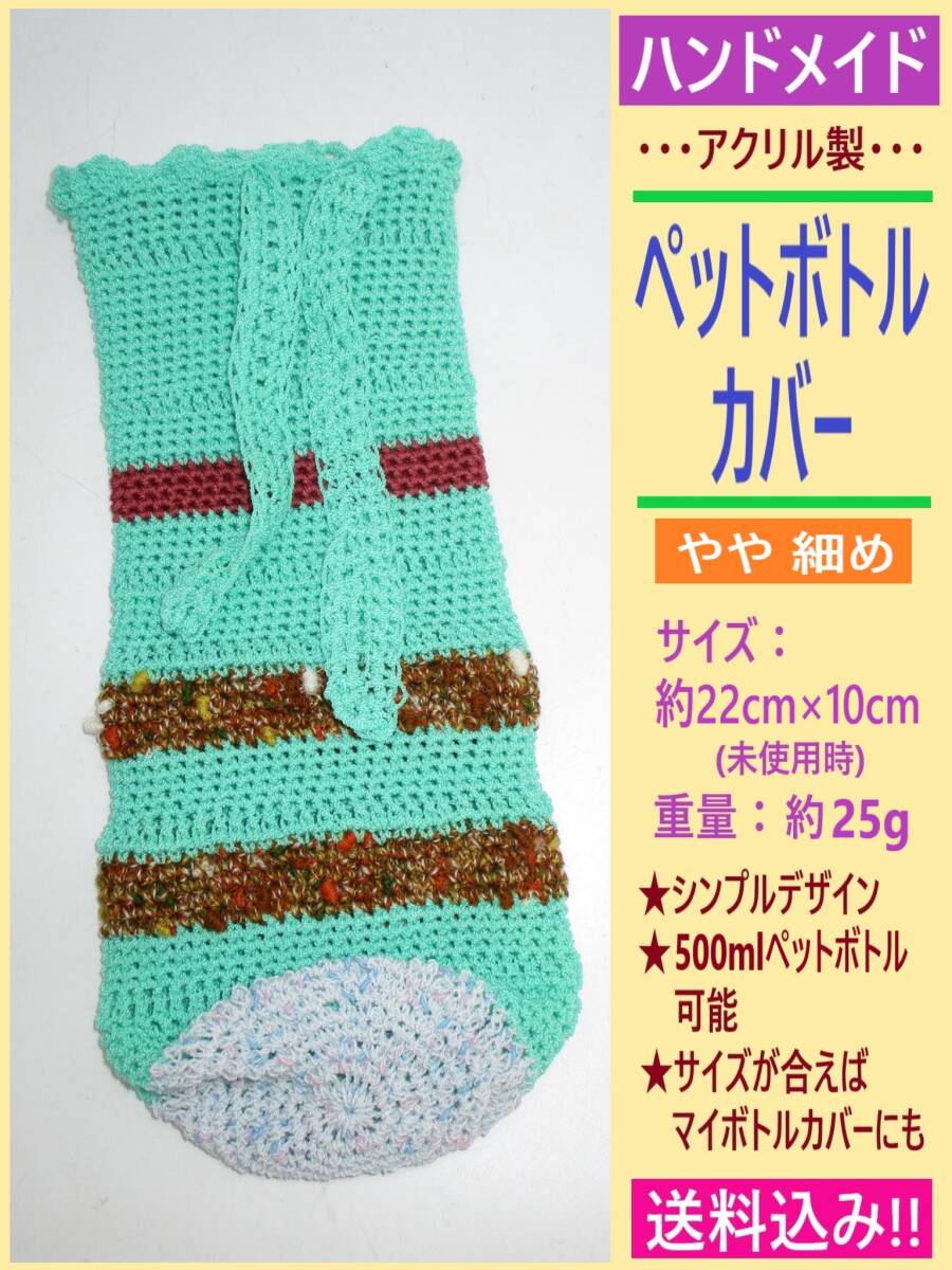 - ハンドメイド ペットボトル カバー 1点 H 小さめ やや細め 手編み アクリル 目印 500ml可能 ボトル ホルダー マイボトル 水筒 袋 ボーダー