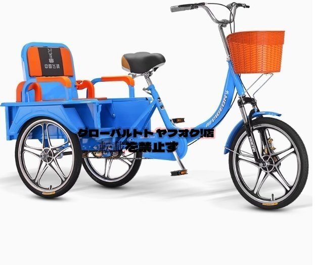 - 人気推薦◆三輪自転車 大人 高齢者用 後部座席の快適な自転車のバイクが高齢者に適した 20in成人自転車高炭素鋼フレーム 125
