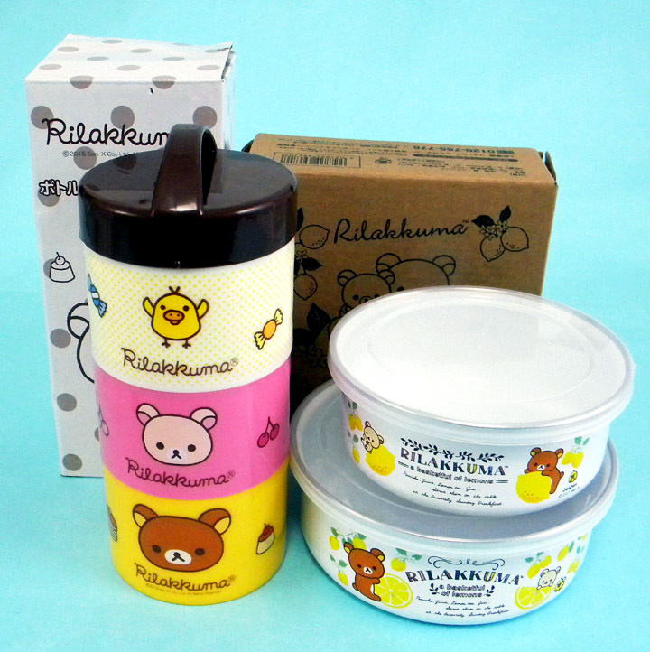 - ★ リラックマ ★ ボトル型 三段ランチ BOX (スプーン付)& ふた付き ホーロー容器(2個組)/ [非売品]【2点セット】