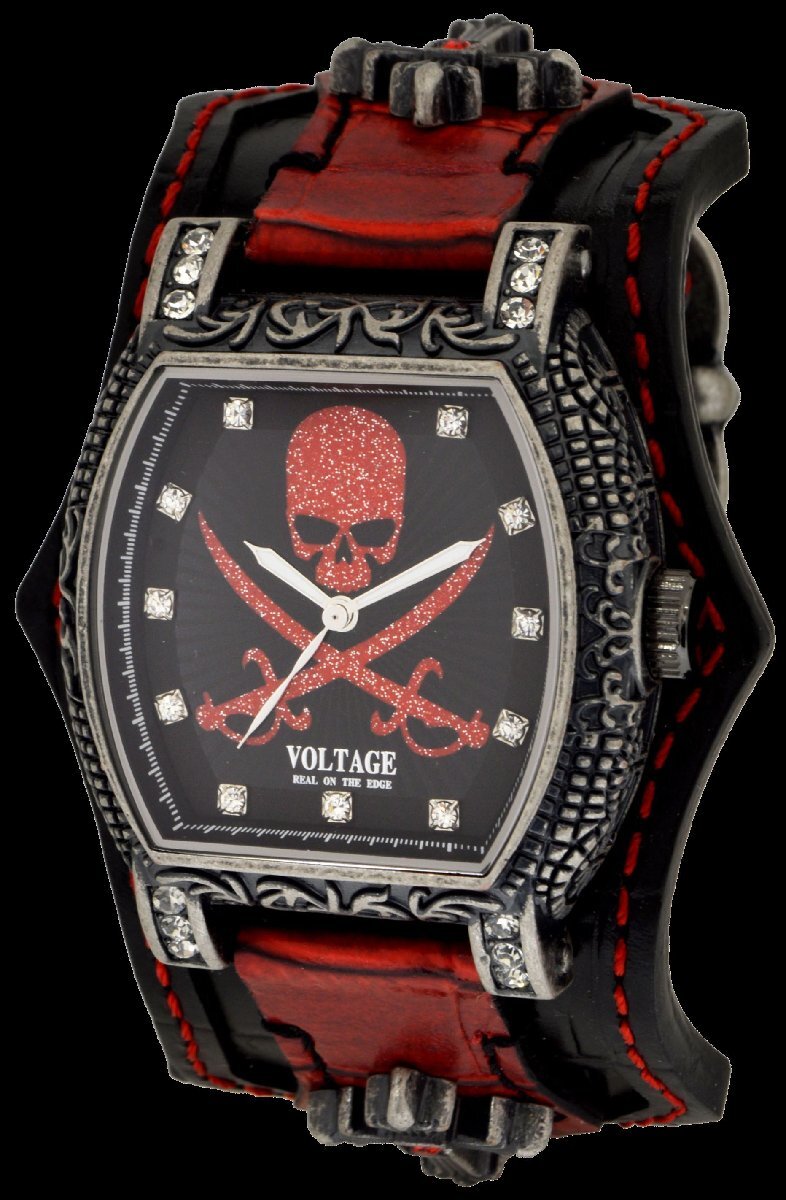 - VOLTAGE/ヴォルテージ レッドブラック スカル クロス 牛本革 レザー腕時計 VO-024S-02BR ウォッチ オラオラ 派手 メンズ ファッション