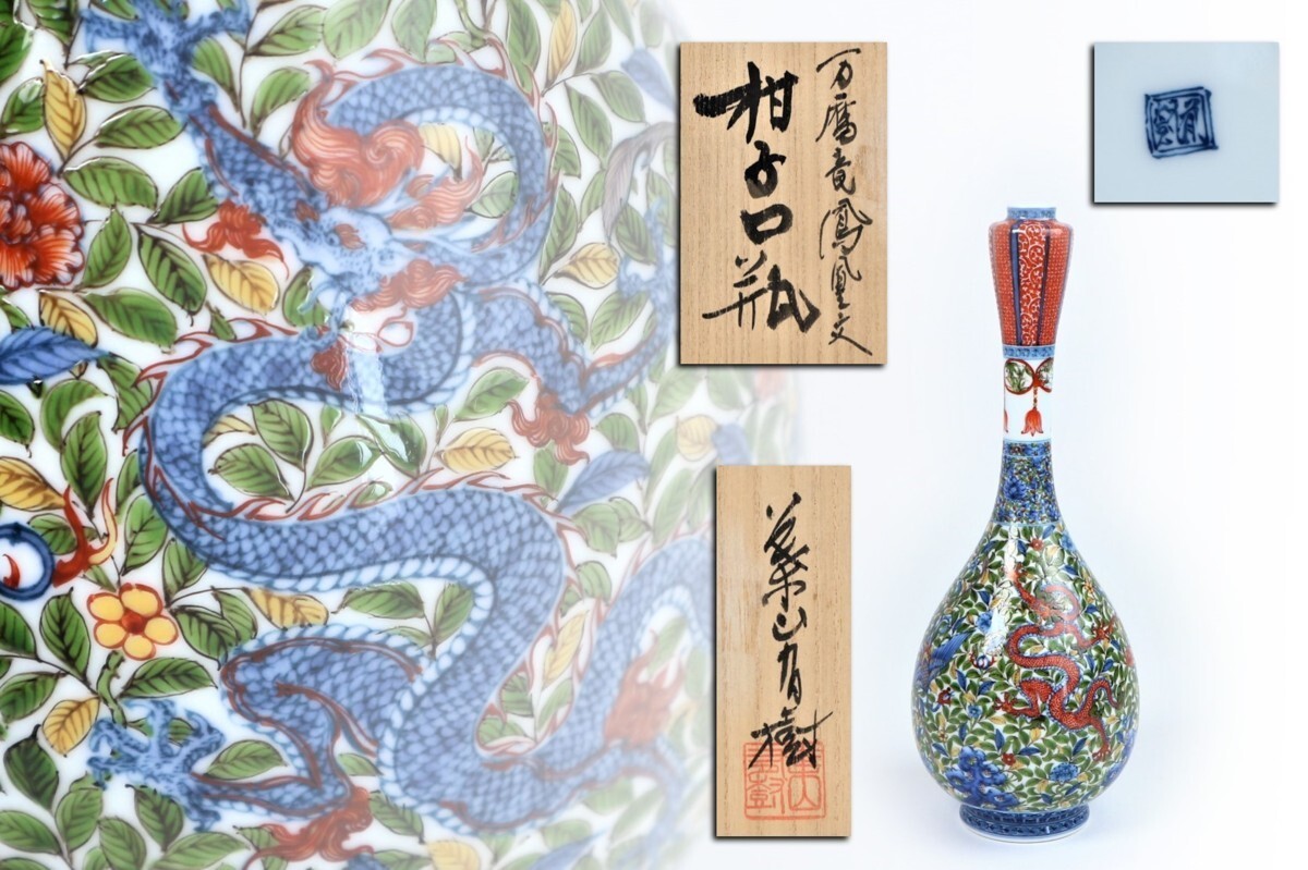 | ・葉山有樹 万歴竜鳳凰文 柑子口瓶 共箱 共布 |