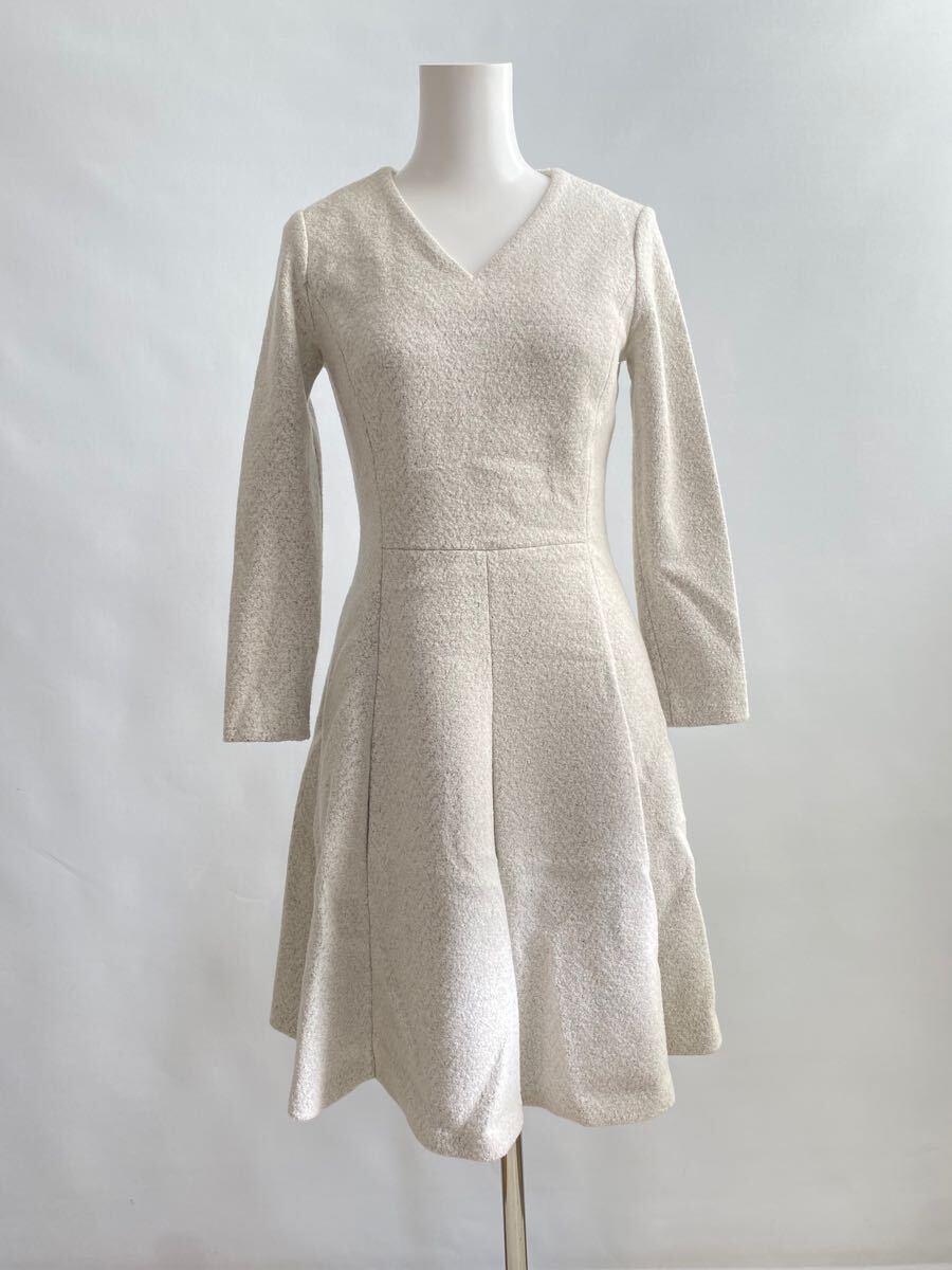 > ★ EPOCA 美シルエット♪ ◆ ウール ワンピース グレー サイズ38 プリーツ ひざ丈スカート 長袖 ドレス エポカ ◆W18 HJN7あ-05