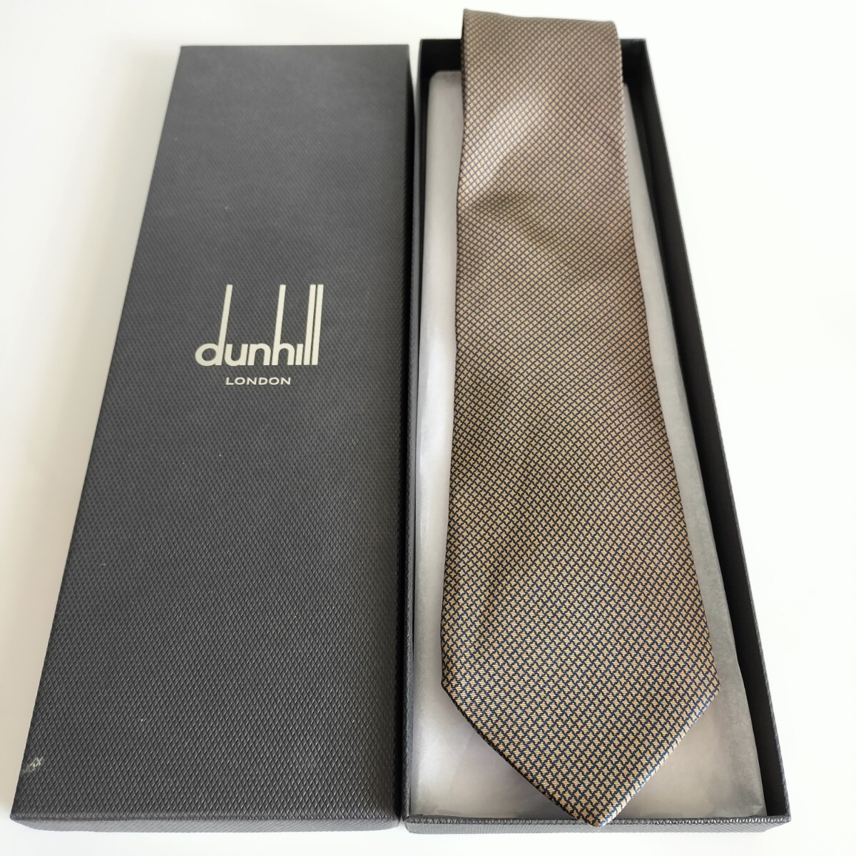 - ダンヒル(Dunhill)紺茶色ミクロ四角ネクタイ