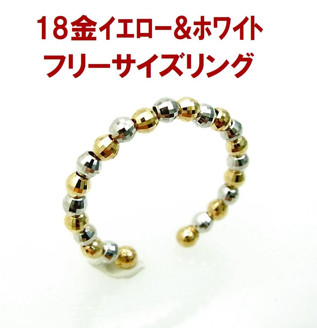 > どの指でもOK 18金 イエロー ホワイト製 カットミラーボール フリーサイズリング 卸価格 商品動画あり 送料込み