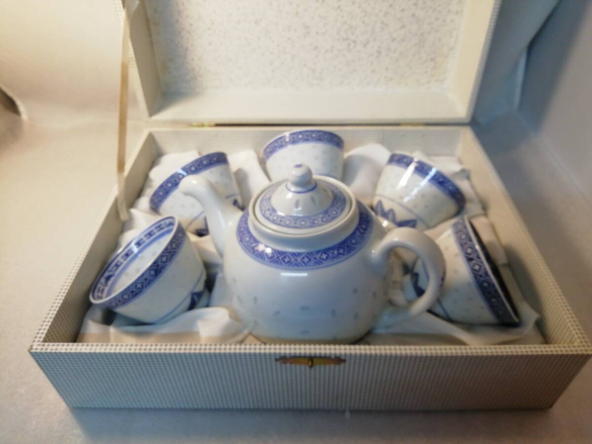 - ◆中国 景徳鎮製 【茶器セット 急須 湯呑み5個 】未使用・箱入り