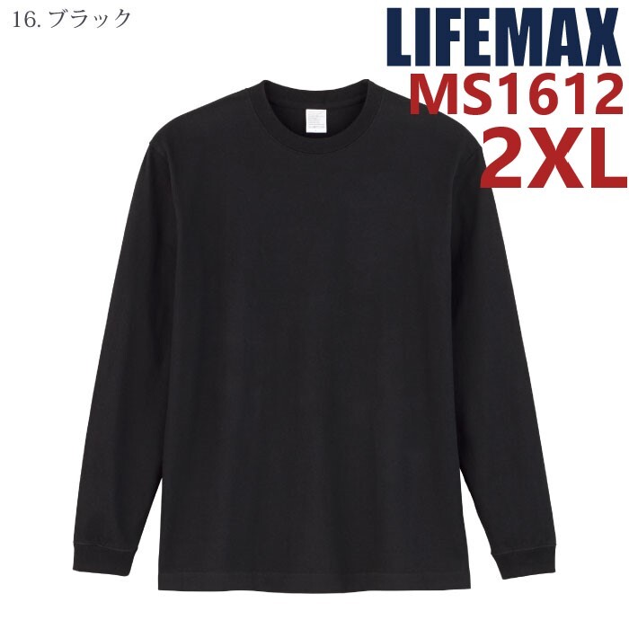 > 新品 5枚セット LIFEMAX MS1612 5.6オンス ロングスリーブTシャツ 2XL ブラック ライフマックス ロンT 無地Tシャツ 長袖 未使用品 丸首