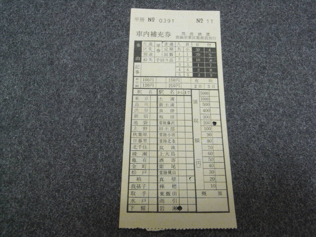 - 車内補充券 筑波鉄道 真鍋車掌区乗務員発行 0391-11