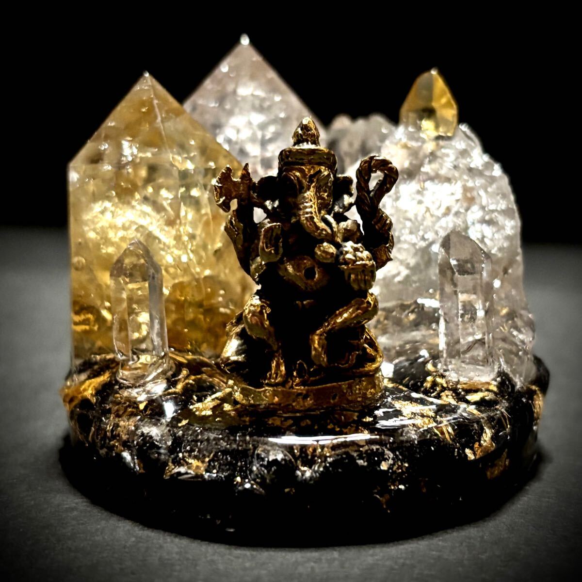 - ◇夜更けのガネーシャ◇オルゴナイト◇オブジェ◇トルマリン◇シトリン◇水晶◇