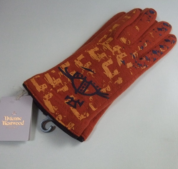 - Vivienne Westwood ヴィヴィアン・ウエストウッド ニットグローブ 手袋 21cm~22㎝ 未使用品 百貨店 オーブ プリント柄